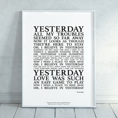 Yesterday Song Lyrics Print Songprints Com